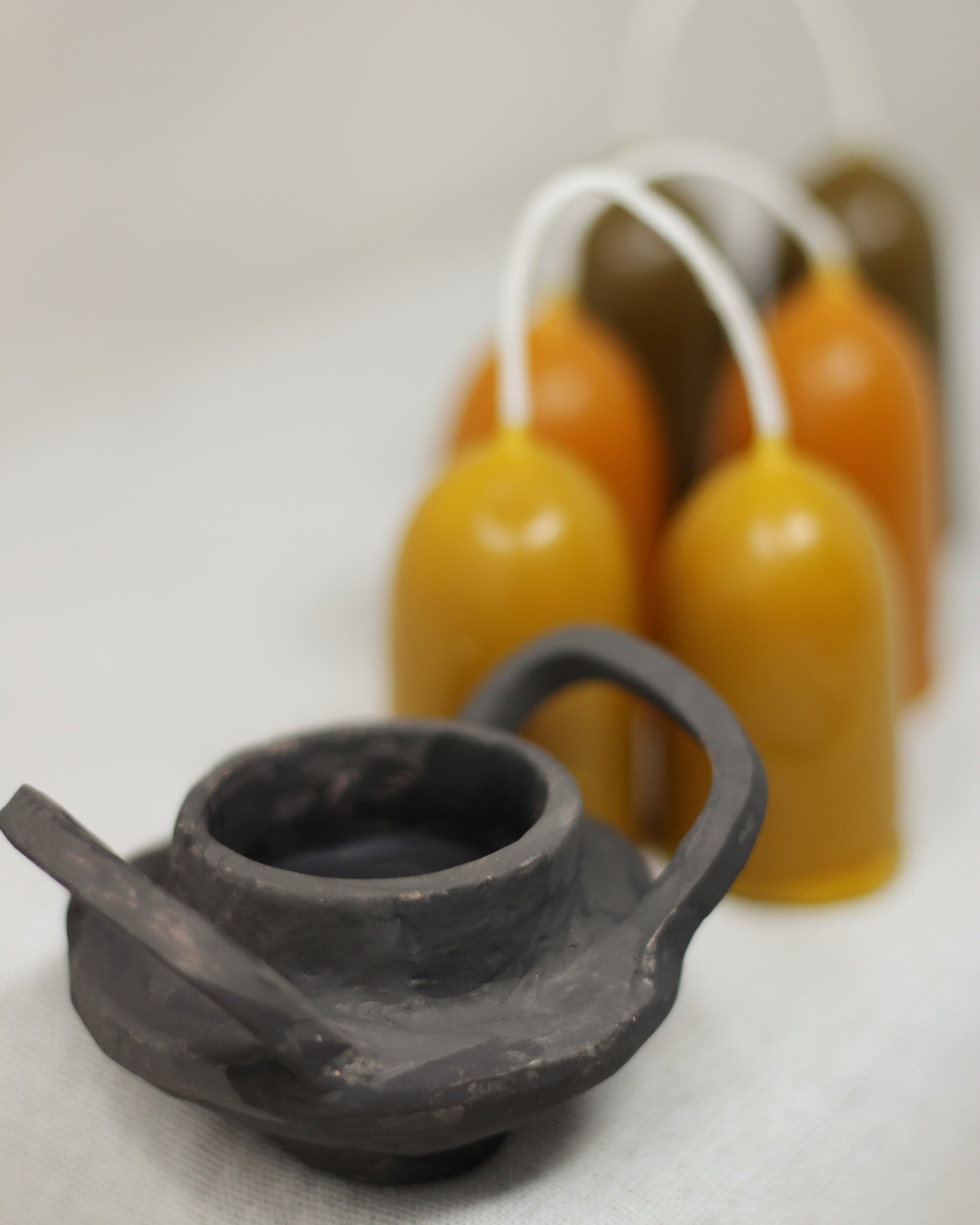 Born from a shared love of craft and ritual, this candle holder was designed in collaboration with Eva of A Pomar, and shaped by hand with intention. Its proportions were carefully considered to hold our Votive Stubbies, and it also fits the Lumina Stubbies perfectly.